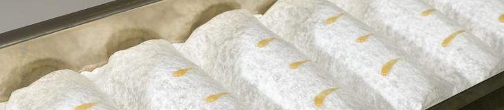 Using this automatic assembly machine, PA-490, pocket spring row can be processed into springs units of different dimensions. The connection can either be realized using “centre“ gluing only or using “top/bottom“ gluing by applying a non-woven cover material.