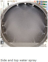 Because there are multiple turbines (sprays) to mix the steam and the air throughout the autoclave, unlike systems that utilize a single fan at the end.